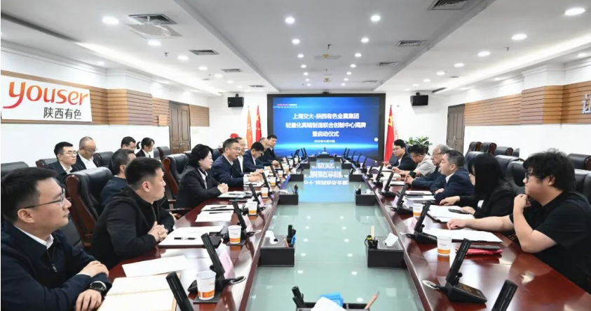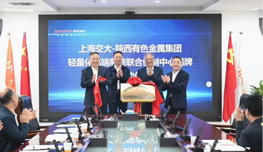 10月10日,上海交大—陕西有色金属集团轻量化高端制造联合创制中心揭牌暨启动仪式在集团总部举行。中国工程院院士、上海交大轻合金精密成型国家工程研究中心主任丁文江,陕西有色金属集团党委书记、董事长吴群英见证揭牌,上海交大党委常委、副校长、镁材料及应用工程技术研究中心主任曾小勤和集团公司党委委员、副总经理黄忠良共同为联合创制中心揭牌。