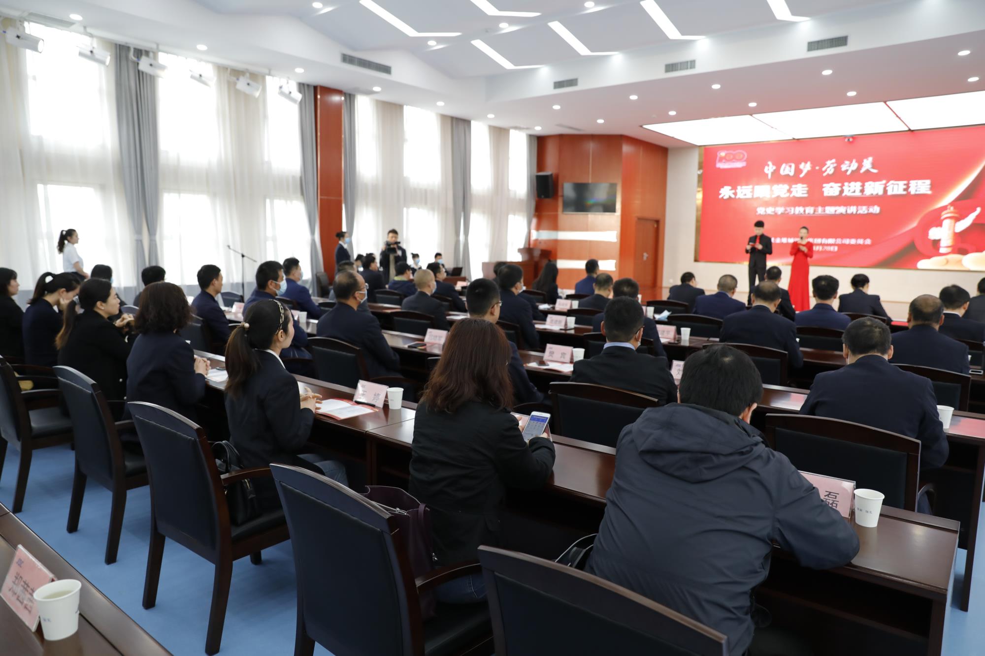 时值中国共产党成立100周年之际,为进一步讴歌党的丰功伟绩,礼赞中国特色社会主义的伟大成就,弘扬劳模精神、劳动精神、工匠精神,激发广大党员干部和职工群众团结奋进、实干担当,为金钼集团高质量发展创造良好的氛围。4月28日上午,金钼集团在渭南金城大厦四楼会议室举办了“中国梦·劳动美—永远跟党走 奋进新征程”党史学习教育主题演讲比赛。