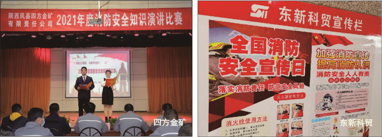 消防宣传“火起来”。为激发职工关注消防安全、参与消防的主动性和积极性,各权属单位积极创新形式,各类防灾宣传活动如火如荼。四方金矿开展了以“落实消防责任 防范安全风险”为主题的消防安全知识演讲比赛,加强了广大职工对《消防法》的全面理解和认识;物化探总队公司、东新科贸开辟消防宣传新阵地,通过悬挂主题横幅、海报宣传、分发消防知识手册、电子屏滚动播放等形式,延伸消防宣传触角,提升消防宣传受众量,将具有直观性、趣味性、观赏性的防灾知识进行有效传播。