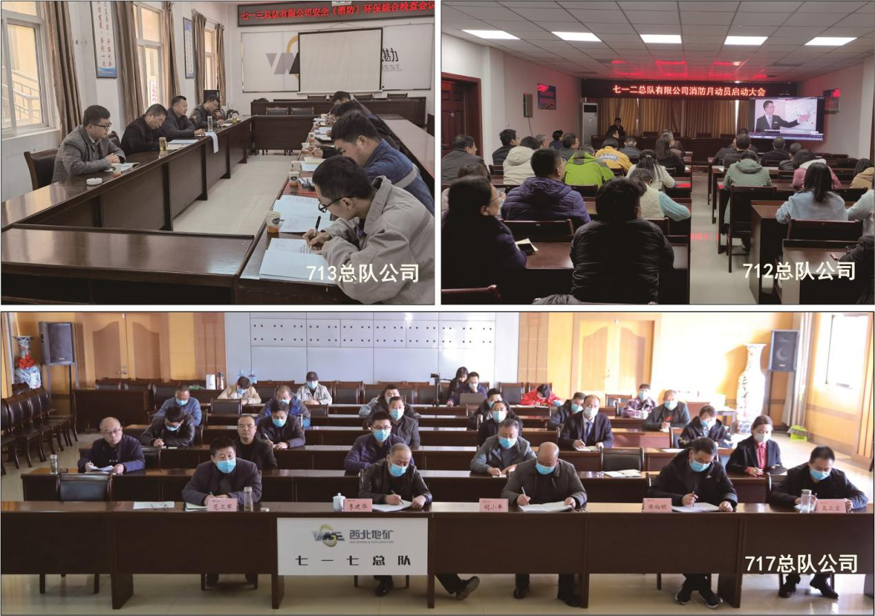 717总队公司等单位及时召开四季度安委会、环委会、消安会(扩大)会议,就抓好抓实四季度安全生产、环境保护工作进行安排部署,要求各单位各部门严格落实24小时在岗值守和信息报告制度,高度重视居家消防安全,做好火源管理和用电管理,重点防范野外用火用电安全,确保安全环保工作落实到位;713总队公司召开了矿山安全(消防)、环保重点工作推进工作会,结合全年安全环保目标责任书、重点工作落实情况及隐患排查存在的问题,重点对山阳秦鼎、山阳秦金、山阳纵横三家矿山安全、消防、环保等工作,进行再动员再部署;工程公司等单位陆续开展了冬季施工安全环保消防专项检查工作,为全力做好安全生产风险管控和隐患排查治理提供保障。