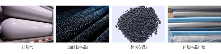 硅材料产品主要包括多晶硅、单晶硅(直拉和区熔)和硅外延片等。多晶硅可直接用于浇铸多晶硅锭,然后加工成太阳能光伏电池片。多晶硅还可以用来制备单晶硅。直拉硅单晶广泛应用于集成电路和中小功率器件。区熔单晶目前主要用于大功率半导体器件,比如整流二极管,硅可控整流器,大功率晶体管等。外延片则大量用于制造双极型集成电路、高频晶体管、小功率晶体管等器件。