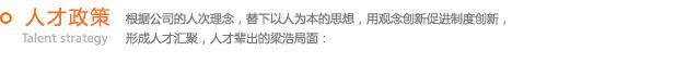 留人 依靠“事业、责任、感情、薪酬”,不设置任何堡垒,创造宽松的人才进出环境;人才政策是公司理念的具体表现,也是公司文化的重要传承,公司愿为各路英才提供力所能及的服务与保障,使员工“人尽其才,才尽其用”