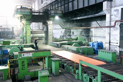 宝钛集团的三米三热轧机正在轧制钛板材。