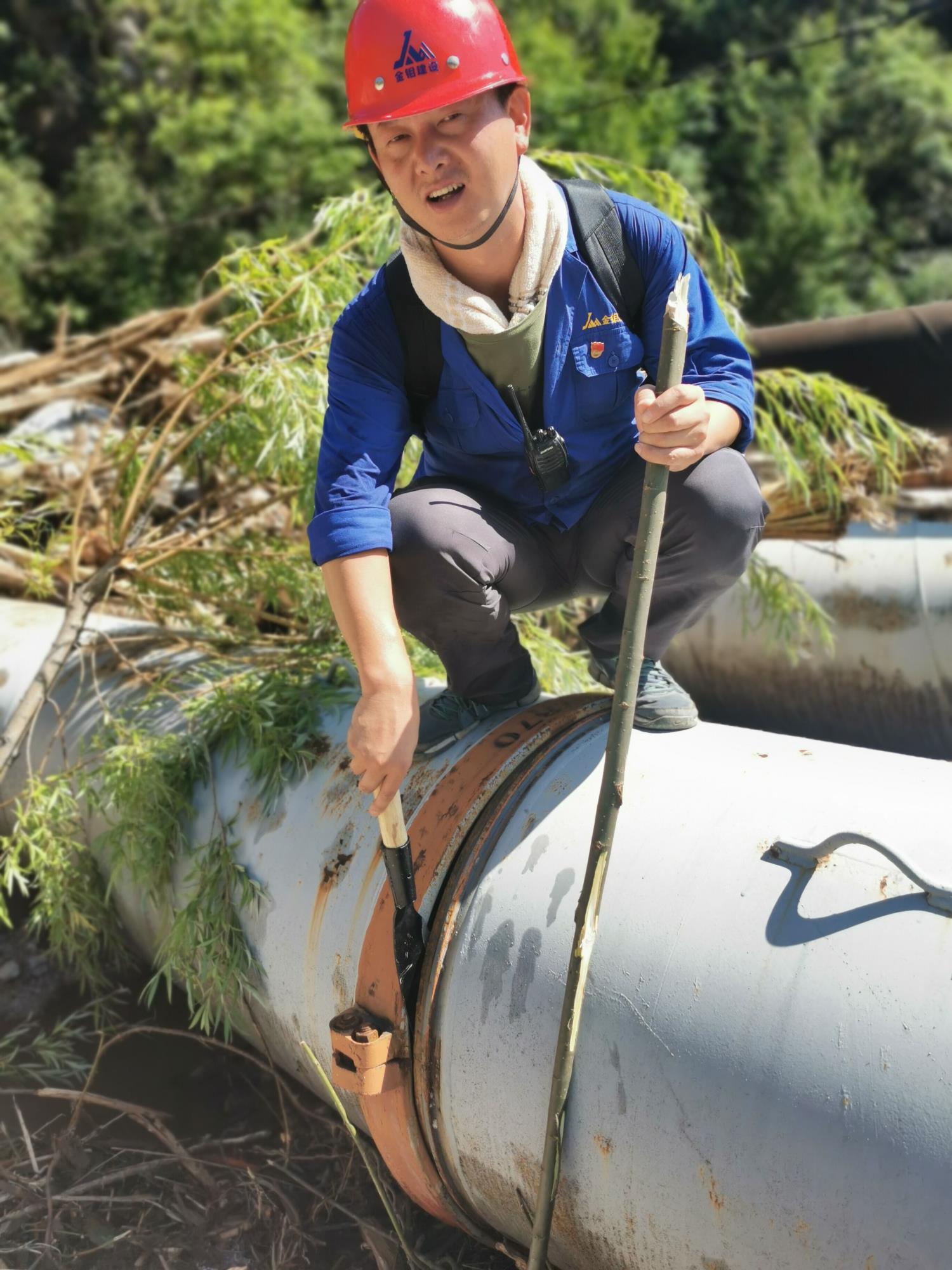 由于尾矿输送沿线多处山体滑坡,泥石流掩埋多处隧洞口,隧洞内淤泥积水严重。陈飞作为现场指导,每天早上7点出发,在多个作业点来回穿梭,制定详细作业计划、组织抢险人员设备,分配任务指导技术,下山已到深夜。他自己都记不起来来回回走了多少路,泥水长时间的浸泡,腿脚浮肿,嘴角烂了,嗓子哑了,手掌磨破了,他依然坚持不下火线、毫无怨言。经过10多天的日夜奋战,王家坪尾矿库输送管线抢修完成,为恢复生产创造了条件。