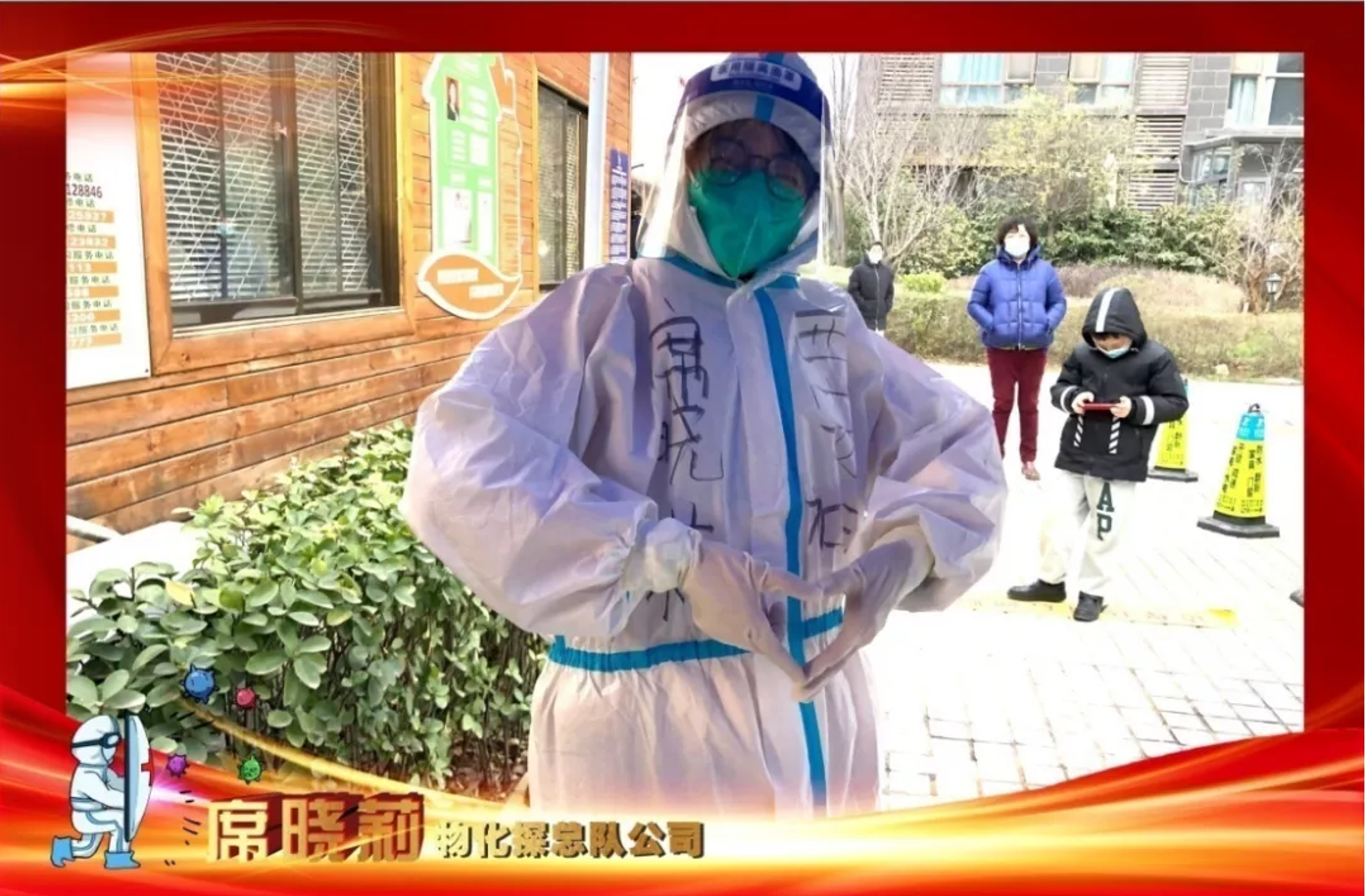 地矿集团物化探总队公司党群工作部副部长席晓莉给人的第一印象是“好瘦”!穿上防护服,你可一点都瞧不出来,变成了可爱的胖“大白”。她被安排在曲江唐仁里小区,白天化身“大白”保障安全,晚上变身“黄马甲”运送物资,干起活儿来毫不含糊。虽说是干了多年的老宣传,可当自己面对镜头时,却显得有些羞涩。