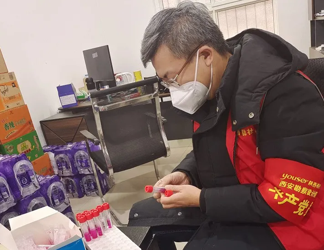2021年12月23日晚7时30分,西安勘察设计院保障中心主任牛军接到了党委工作部的紧急电话:“牛主任,刚接到陕西有色金属集团的紧急通知,目前西安疫情正处在严峻时期,社区工作人员人手不足,为支持西安市做好疫情防控工作,现紧急从各单位抽调人员下沉社区,参与社区核酸检测、物资配送、秩序维护等工作。因为要在半小时内报第一批人员名单,时间很紧,需要你们先支援2名同志。”“就报我和刘喜林吧!我们是领导,先报我们两个。”“人员有年龄要求,考虑下沉工作实际,要在45岁以下,你们再重新确认一下吧。”“那好吧,我跟部门同志们沟通一下,疫情发生后,保障中心很多职工都主动报名参与社区防疫,他们一直在一线,人员问题不大,我尽快给你报名单”。十分钟后,第一批下沉干部赵伟、崔宸瑞的基本信息在规定时间内上报到了集团公司。