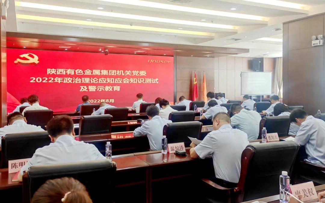 为深入学习贯彻习近平新时代中国特色社会主义思想、习近平总书记关于加强纪律教育的重要论述,提升党员干部政治素养,加强作风建设,坚定理想信念,筑牢思想防线,8月10日,陕西有色金属集团机关党委组织总部全体党员干部开展了政治理论应知应会知识测试,观看了警示教育片,落实落细集团公司纪律教育学习宣传月活动。
