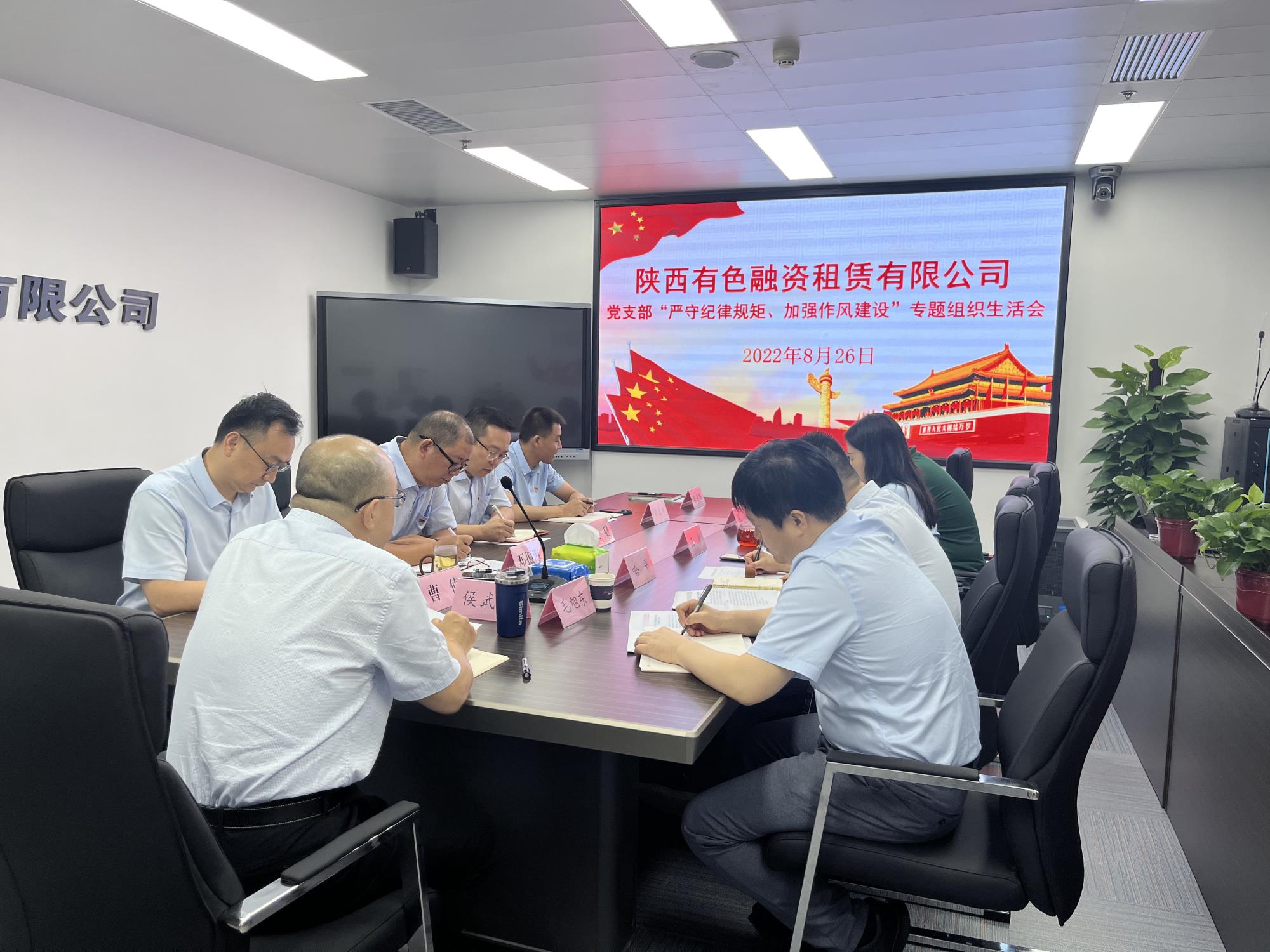 8月26日上午,陕西有色融资租赁有限公司党支部围绕纪律教育学习宣传月活动,召开了“严守纪律规矩、加强作风建设”专题组织生活会,陕西有色金属集团资产财务金融部毛旭东同志列席会议。
