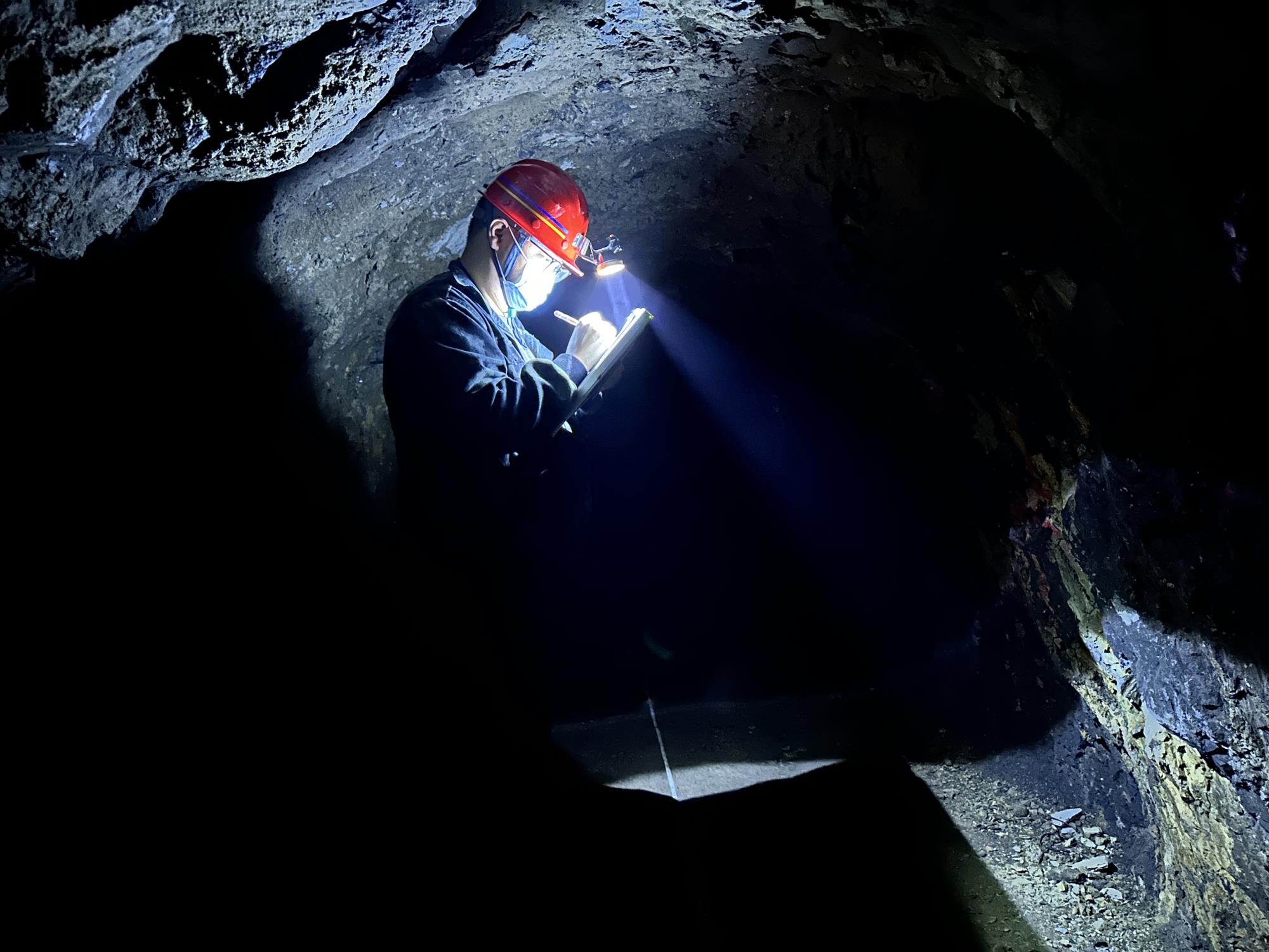当寨子沟矿区样品送检后,坑道成了我的另一个课堂。师父教我测量各类产状,教我展点和产状,教我如何勾画地质界线……水珠从坑道顶板滴落,在矿灯光束里拉出银线。师父的笔尖在岩壁上游走如活物,笔尖顺层理滑动,在图纸上旋出流畅的曲线。昏暗光线下,那墨线竟有了生命般微微搏动——岩石的密码被解开一道缝隙,矿脉的暖流正渗出石壁。地质锤叩击岩壁的颤音未散,岩石纹层间簌簌剥落的碎屑里,恍有古河道裹挟风沙的呼啸掠过指腹。