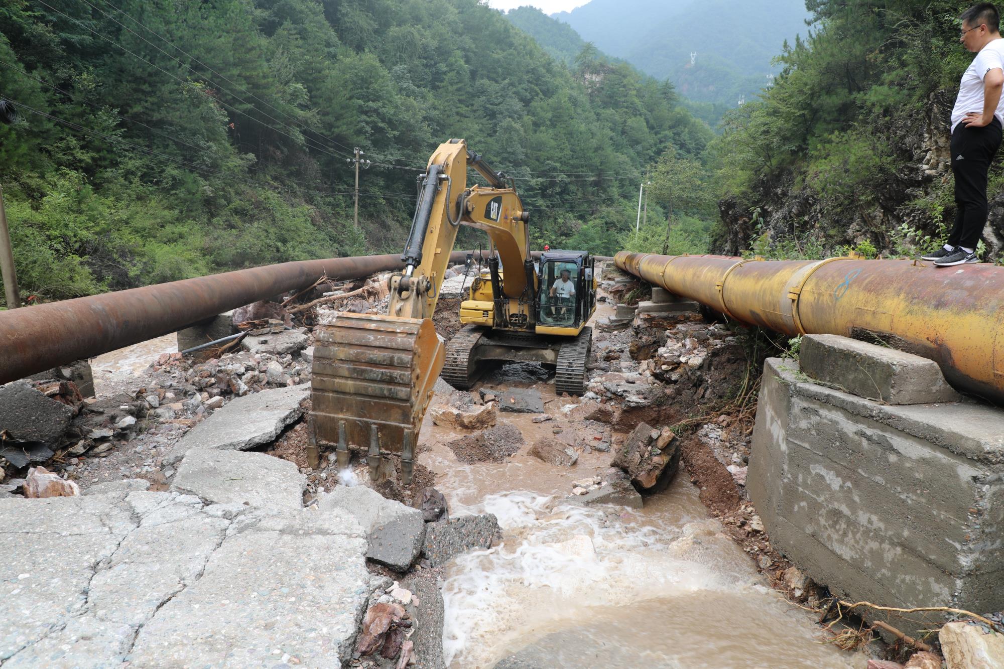 在麻家砭水库道路抢修中,施工人员克服夜晚作业受限、山体土石塌方、突降暴雨等困难,修复损毁道路4余公里,处理塌方20余处,填补修筑用料约1000立方米……