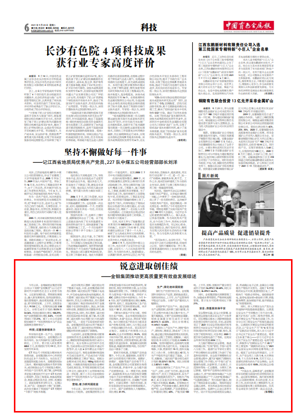 科学技术是第一生产力,创新是企业发展的不竭动力。金钼集团以市场为导向,加大科技研发力度和成果转化。上半年,累计投入研发费用8850万元,获得授权专利19项,其中发明专利3项。