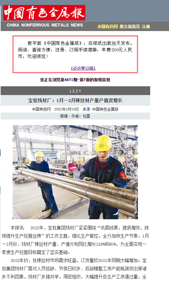 2022年初,钛棒丝材市场需求旺盛,订货量较2021年同期大幅增加。宝钛集团线材厂面对人员短缺、节假日较多、后部精整工序产能瓶颈突出等诸多不利因素,线材厂多措并举,周密组织,大幅提升各生产工序通过量,全力加快生产进度。一是细化生产日计划管理,做到各工序生产进度、通过量精准可控,切实加快各工序间物料流转速度,保证生产组织有序高效。二是优化生产组织模式,根据加热炉特点,在热轧车间实施“两班制”,确保完成轧制生产任务;在后部产能瓶颈突出的棒丝、精整车间,通过加强班产定额考核,保证有效工作时间,实施“人停机不停”等生产组织模式,生产效率大大提高。三是组织开展劳动竞赛活动,充分调动广大员工生产积极性;组织机关人员支援生产,打破工种界限横向流动等方式,有效地缓解了人员短缺造成的产能瓶颈。四是认真做好元旦、春节期间的生产组织,各级值班保障人员,特别是一线作业人员放弃假期休息,变“假期”为“工期”,开足马力加快生产。
