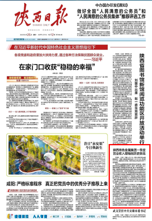 4月22日,记者从陕西有色金属集团获悉:一季度,该集团实现营业收入430.96亿元,同比增长33.42%,增幅创历史新高,为顺利完成全年经营目标打下坚实基础。