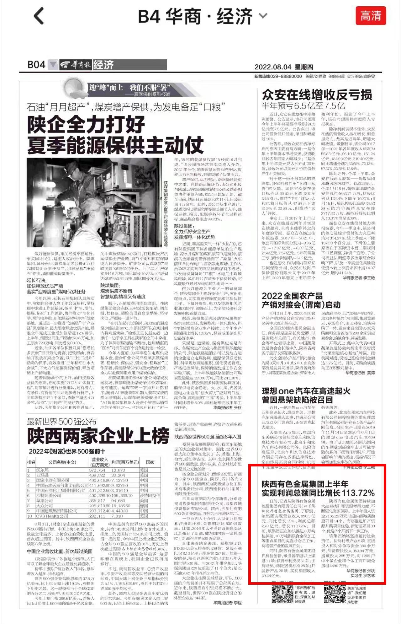 日前,记者从星空体育最新官网(以下简称陕西有色金属集团)了解到,该集团实现营业收入890.3亿元,同比增长15%,利润总额26.8亿元,增长113.72%。目前,该集团正在加快推进8万吨粒状硅、10万吨铝镁合金深加工等重点项目的实施或论证工作,将增强产业的发展后劲。