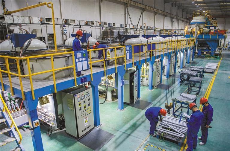 11月11日,在金堆城钼业股份有限公司金属分公司钼制品分厂,工人正在进行中频烧结设备的工艺巡检、产品出装、产品检验。今年前10月,金堆城钼业股份有限公司金属分公司主营业务收入同比增长44.3%,利润总额同比增长47.2%,累计产量同比增长17.43%,累计销量同比增长10.13%,钼制品产量创历史新高,同比增长100%。 本报记者 袁景智摄