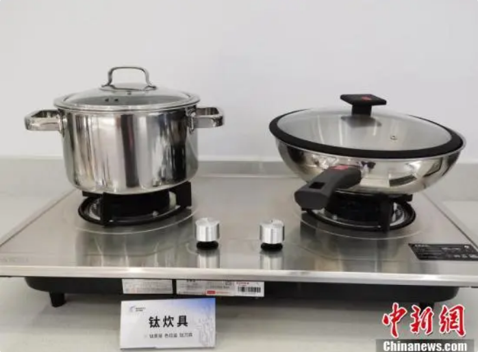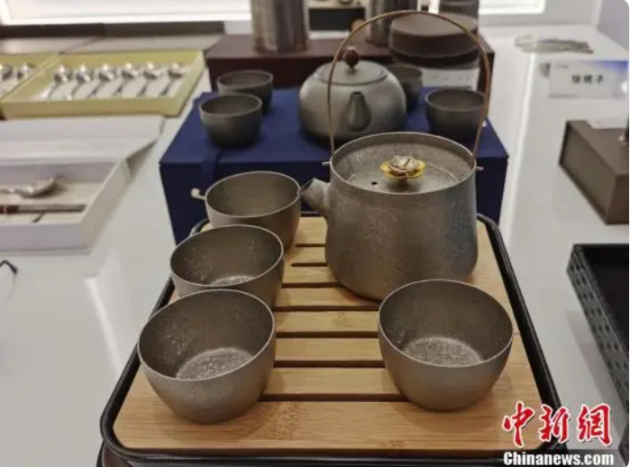宝钛集团展览馆内,用钛制作的水壶、水杯。党田野 摄