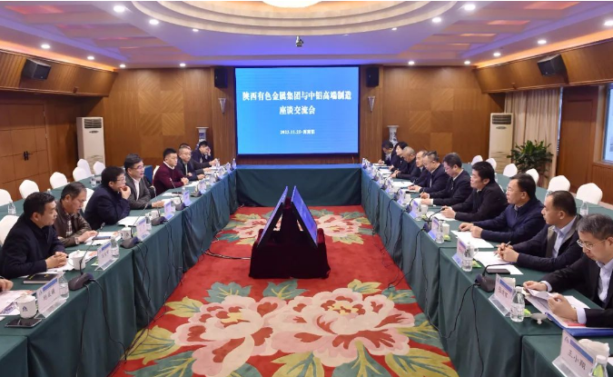11月25日,陕西有色金属集团党委书记、董事长吴群英率队赴重庆走访了中国铝业集团高端制造股份有限公司(以下简称中铝高端制造),与中铝高端制造党委副书记、总经理李谢华围绕产业协同、科技创新、高端制造等领域合作进行座谈交流。陕西有色金属集团党委副书记、董事王小庆,党委委员、副总经理黄忠良,党委委员、副总经理王天雄一同走访。中铝高端制造副总经理、西南铝党委书记、董事长黎勇参加会见。