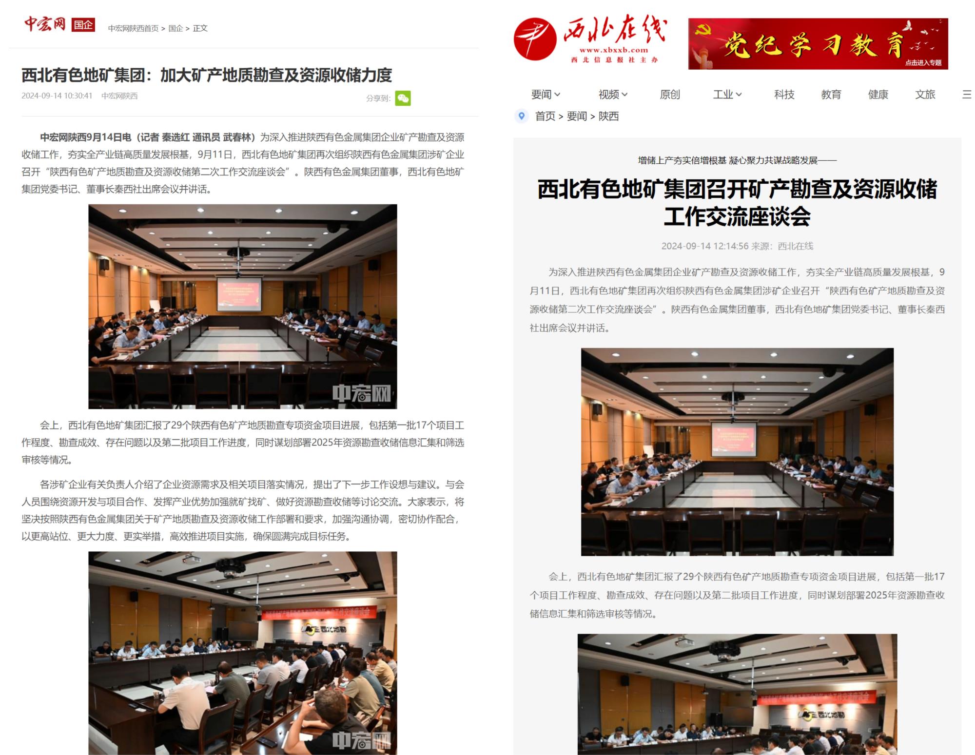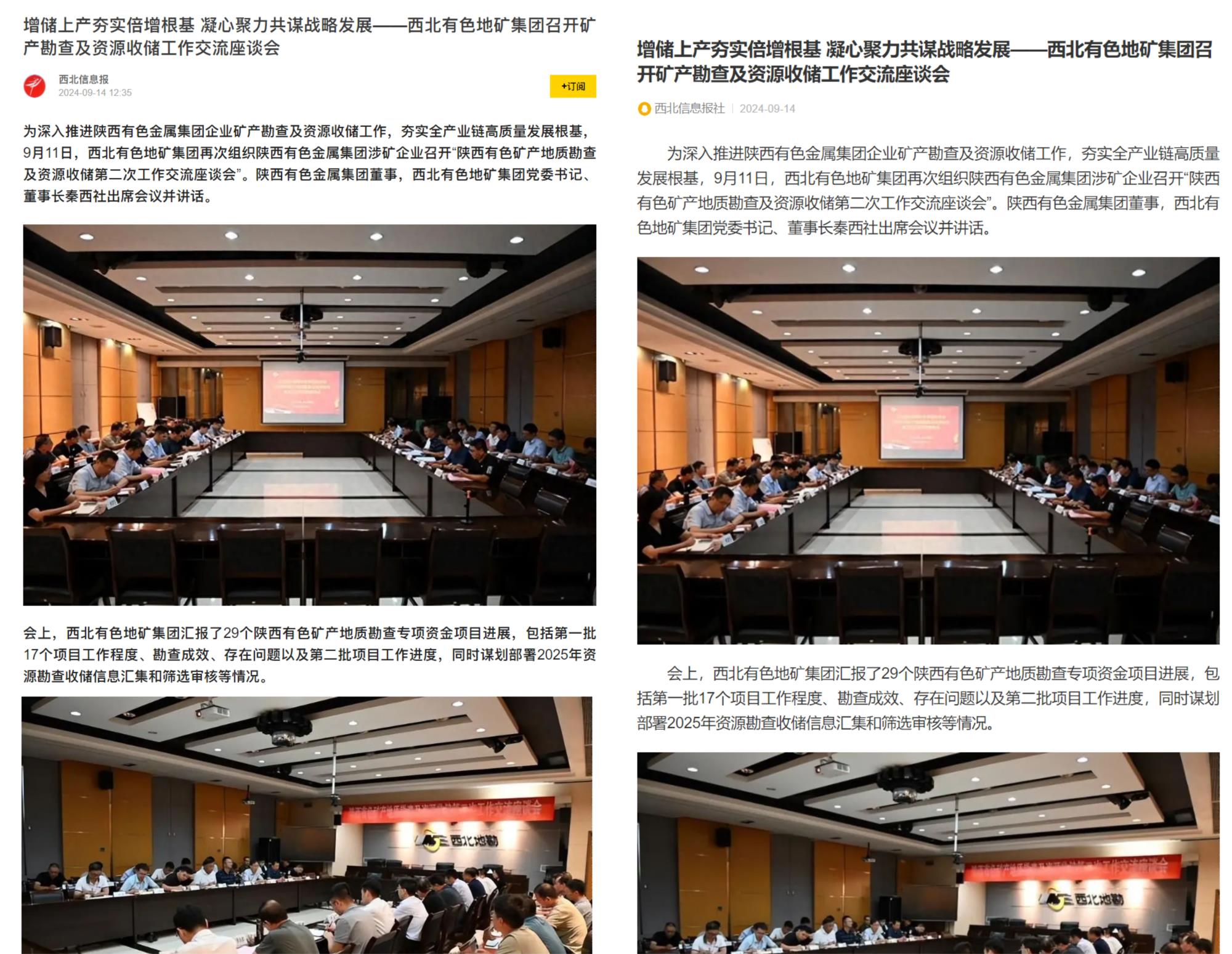 近日,地矿集团组织陕西有色金属集团涉矿企业召开“矿产地质勘查及资源收储第二次工作交流座谈会”,全面总结陕西有色29个矿产地质勘查专项资金项目进展,谋划2025年资源勘查收储信息汇集和筛选审核等工作。陕西有色金属集团以“国之大者”的使命担当,坚定不移加大矿产地质勘查及资源收储力度的经验做法和有关项目进展引发社会媒体关注。