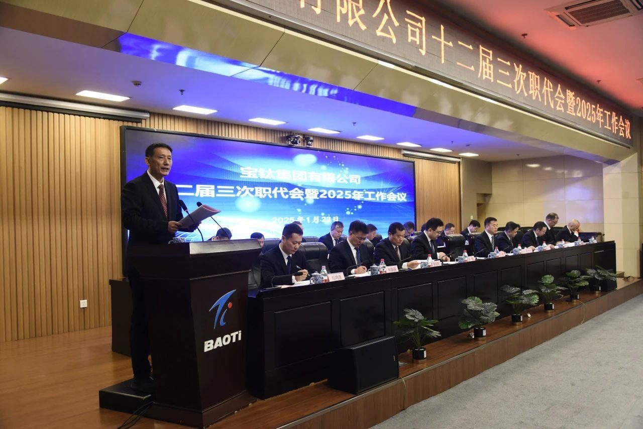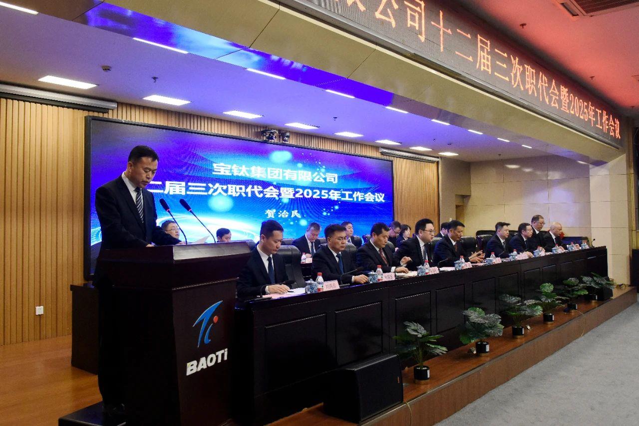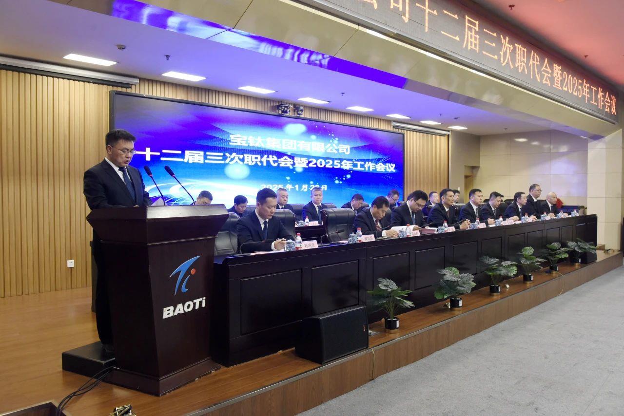 1月23日,宝钛集团十二届三次职代会暨2025年工作会议顺利召开。集团党委书记、董事长、总经理王俭作工作报告,党委副书记、工会主席贺治民主持会议,党委委员、副总经理何联国传达上级会议精神。