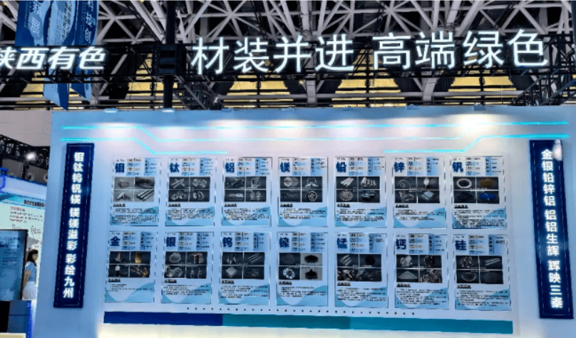 本届丝博会设置丝路优品展、国际合作展、科技创新展、低空经济展、交通物流展、文旅消费展6个展区。“陕西有色·高新材料”展馆位于科技创新展区核心位置,以展示坚定“材装并进、高端绿色”主业新定位、打造“有色金属高新材料新名片”成果为目标,展馆设计思路突出科技感和绿色、节能、环保理念,色调以“科技蓝+星空银”辅以生态绿点缀,简约、大方、经济,用多变的灯光设计展示陕西有色特色、设备模型及展览创意。展陈反映企业形象,突出企业特点与优势,展示了陕西有色金属集团遵循习近平总书记关于“实现科技自立自强、构建现代化产业体系”总要求的坚定信心和生动实践。