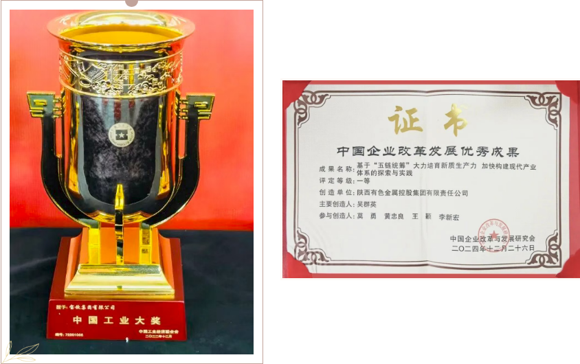 工业总产值和利润实现10%双增长。陕西有色金属集团全面落实党中央决策部署及陕西省委、省政府国企高质量发展工作部署,聚焦企业核心功能增强、核心竞争力提升,破题高质量转型升级,找准了破题之道。2024年,该集团工业总产值和利润总额增幅均超过10%,主要产品产量持续增长,战略性新兴产业投资占比超过60%,开发新产品30项,开发新客户近400家,获评2024中国企业改革发展优秀成果奖一等奖,以及陕西省国资系统稳增长突出贡献奖、科技创新奖、改革发展提升奖三项大奖,获评2024年度陕西省属企业党建工作目标责任考核优秀企业、经营业绩目标责任考核A级企业。权属企业宝钛集团荣膺中国工业大奖,宝钛股份荣膺国家级制造业单项冠军,6家企业取得AAA级授信。