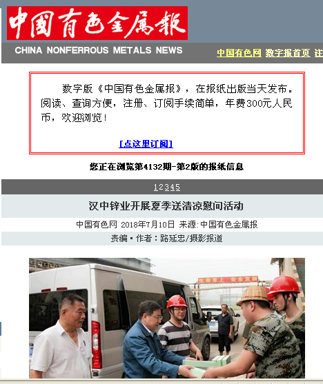 中国有色金属报:汉中锌业开展夏季送清凉慰问活动