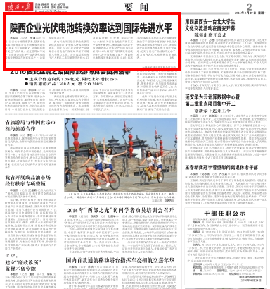 光电科技项目建设伊始就紧盯光伏发展前沿,开展技术研发和科技攻关。目前,公司已在光伏全产业链最核心的电池研发领域掌握了关键技术和核心工艺。公司通过采用离子注入配以二次印刷等先进技术,以及对标管理、7S管理、统计过程(spc)控制,对晶硅电池生产线各工序菜单不断优化,使多晶硅电池片平均转换效率从试车试产时的18%提升到18.4%,最高平均转换效率突破18.6%,并全部实现了量产;单晶硅电池转换效率最高突破20.4%,均高于《国务院关于促进光伏产业健康发展的若干意见》中要求的“单晶硅光伏电池转换效率不低于20%、多晶硅光伏电池转换效率不低于18%”的规定,达到了同类产品国际先进水平,成为国内光伏电池转换效率领跑者。