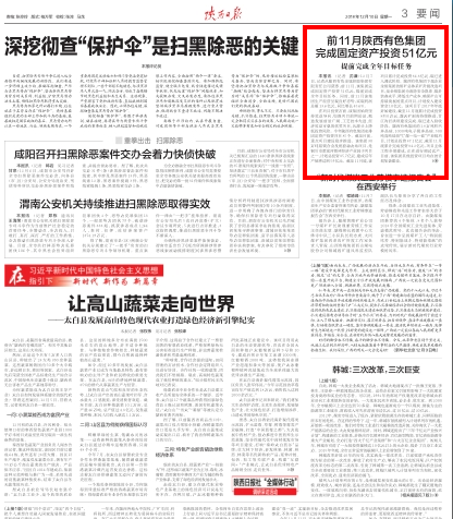 陕西日报:前11月陕西有色集团完成固定资产投资51亿元