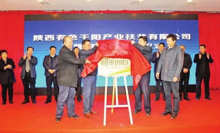 2017年12月26日,陕西有色集团出资1亿元发起成立陕西有色千阳产业扶贫有限公司。图为省政协主席韩勇、陕西有色集团董事长马宝平等为新公司揭牌。 王新权摄