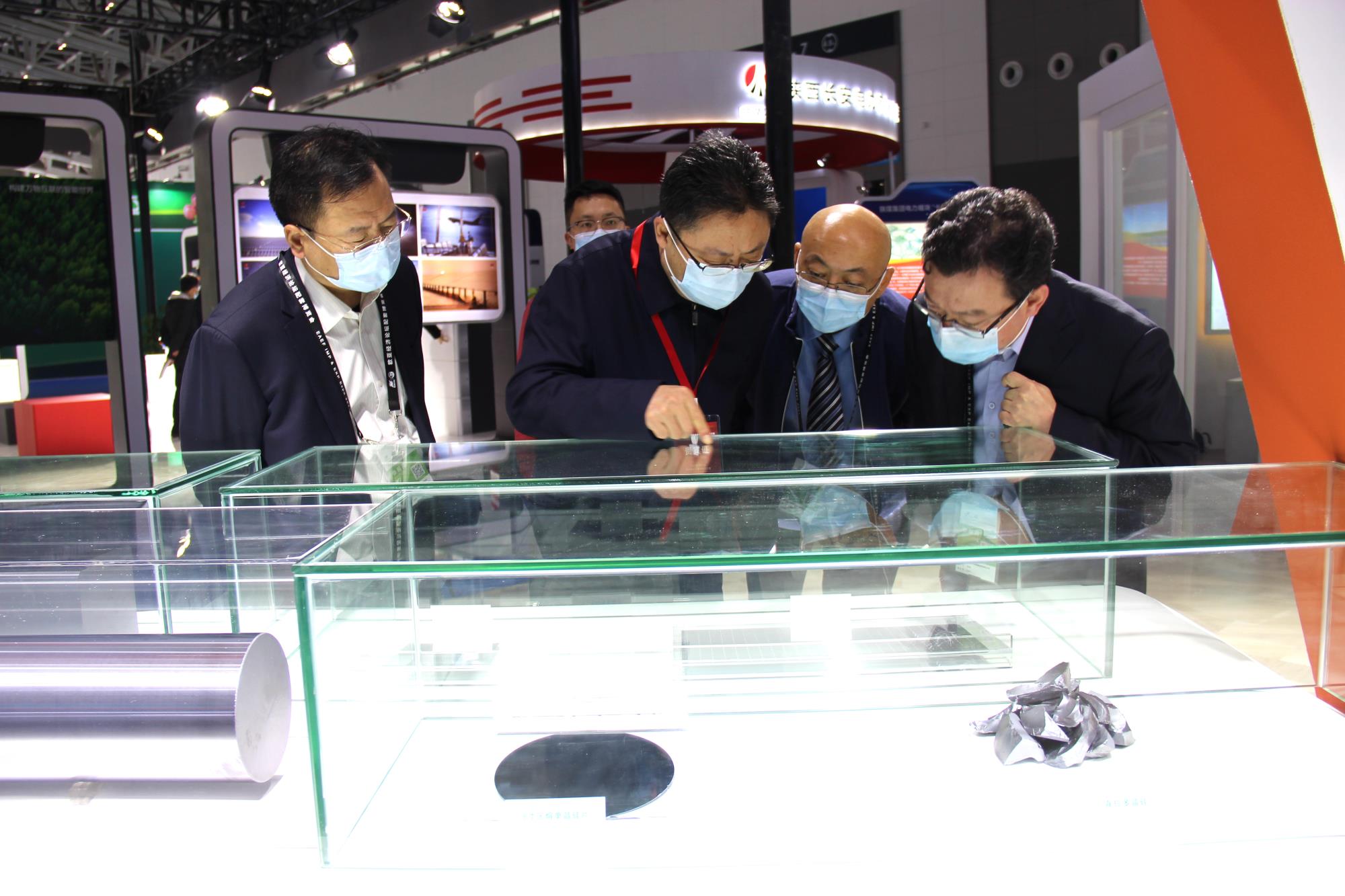 开幕式当天下午,陕西有色金属集团副总经理吴群英一行来到3号展馆参观了陕西有色展区,天瑞硅材料总经理苏旭盛陪同观展。吴群英认真听取了讲解并就布展情况、展品信息及市场前景等情况进行问询,指出参加此次展会是展示和宣传企业的良好机会,要做好展厅现场接待,加强对外沟通交流,打出有色品牌,讲好有色故事。