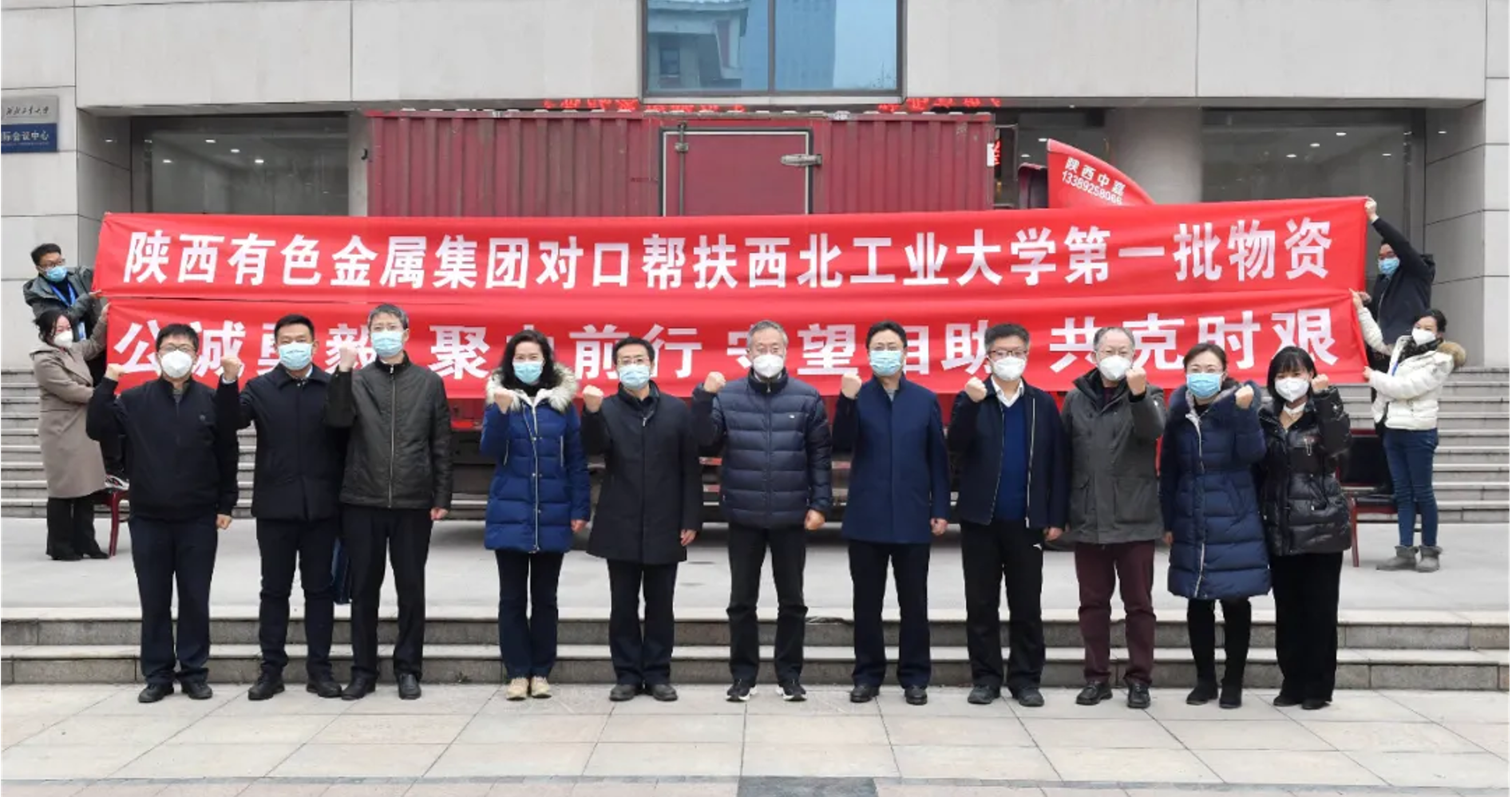 1月2日,陕西省委组织部、省国资委党委召开专题会议,对开展校企结对帮扶工作进行安排部署。“青山一道同云雨、明月何曾是两乡!”陕西有色金属集团党委坚决贯彻、快速行动,召开专题会议,第一时间成立对口帮扶工作专班,围绕全力保障西北工业大学师生正常生活和疫情防控需求,克服困难,广开渠道,加急采购运输大量疫情防控物资和各类生活物资。
