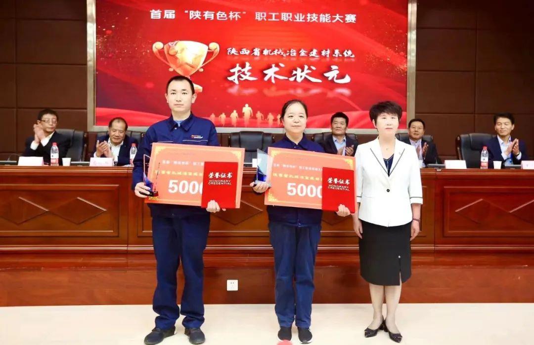 9月28日,首届“陕有色杯”职工职业技能大赛历时三天圆满闭幕。闭幕式上,大赛组委会宣布了比赛结果及表彰决定,并为所有获奖选手颁奖。榆林新材料集团王俊杰、石蕊宁分别获得天车工及化验工(有色行业)比赛第一名,同时被授予 “陕西省机械冶金建材系统技术状元”荣誉称号。