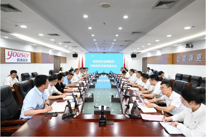 5月31日,陕西有色金属集团党委副书记、董事、总经理莫勇与陕西环保集团党委书记、董事长郝军亮一行座谈交流。集团公司党委委员、副总经理黄忠良,陕西环保集团副总经理张鹏、总工程师田海明参加座谈。