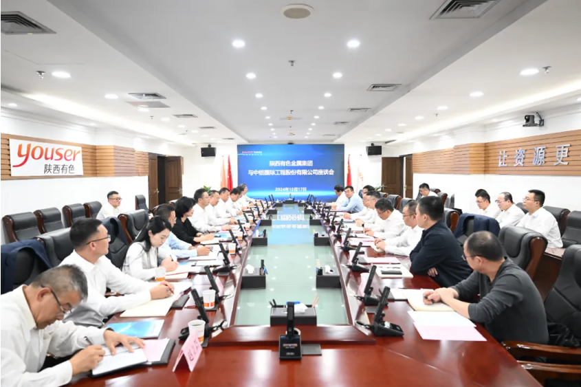 10月17日,陕西有色金属集团党委书记、董事长吴群英在集团总部与中铝国际工程股份有限公司党委书记、董事长李宜华一行进行座谈。集团公司党委委员、副总经理黄忠良,中色科技股份有限公司党委书记、董事长娄建亭,九冶建设有限公司党委书记、董事长杨彪参加座谈。
