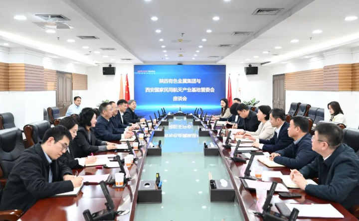 2月24日,西安国家民用航天产业基地管委会党工委副书记、管委会主任林梅一行到访陕西有色金属集团,双方就镁铝钨合金制造基地意向选址开展交流。