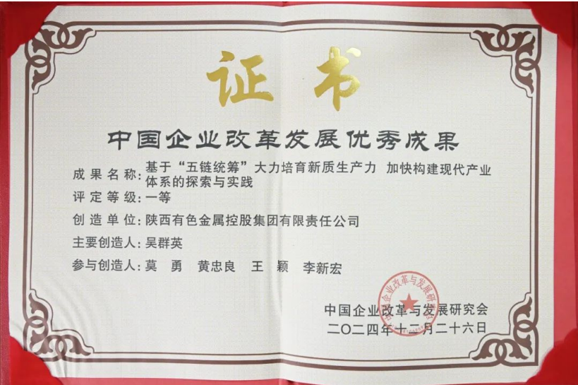 2月22日,由中国企业改革与发展研究会(下称“中企研”)主办的国有企业改革深化提升行动研讨会和第八届中国企业改革发展峰会暨成果发布会在北京举行。陕西有色金属集团应邀参加并作为唯一一家地方国有企业代表在研讨会上作交流发言。集团公司党委委员、副总经理黄忠良出席会议、交流发言并领取“中国企业改革发展优秀成果一等奖”证书。