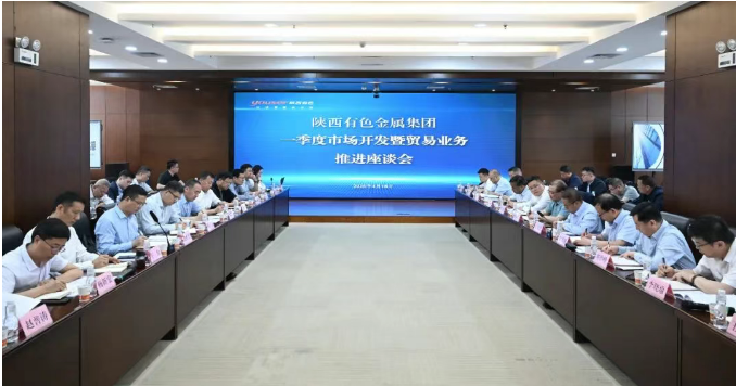 4月18日,陕西有色金属集团召开一季度市场开发暨贸易业务推进座谈会。集团公司党委副书记、董事、总经理莫勇主持会议并讲话。党委委员、副总经理赵黎明传达省商务厅有关调研会议精神,副总经理苏旭盛讲话。