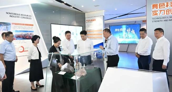 座谈前,苏赫巴托尔·巴特包勒德一行在莫勇等的陪同下参观了陕西有色金属集团展厅。