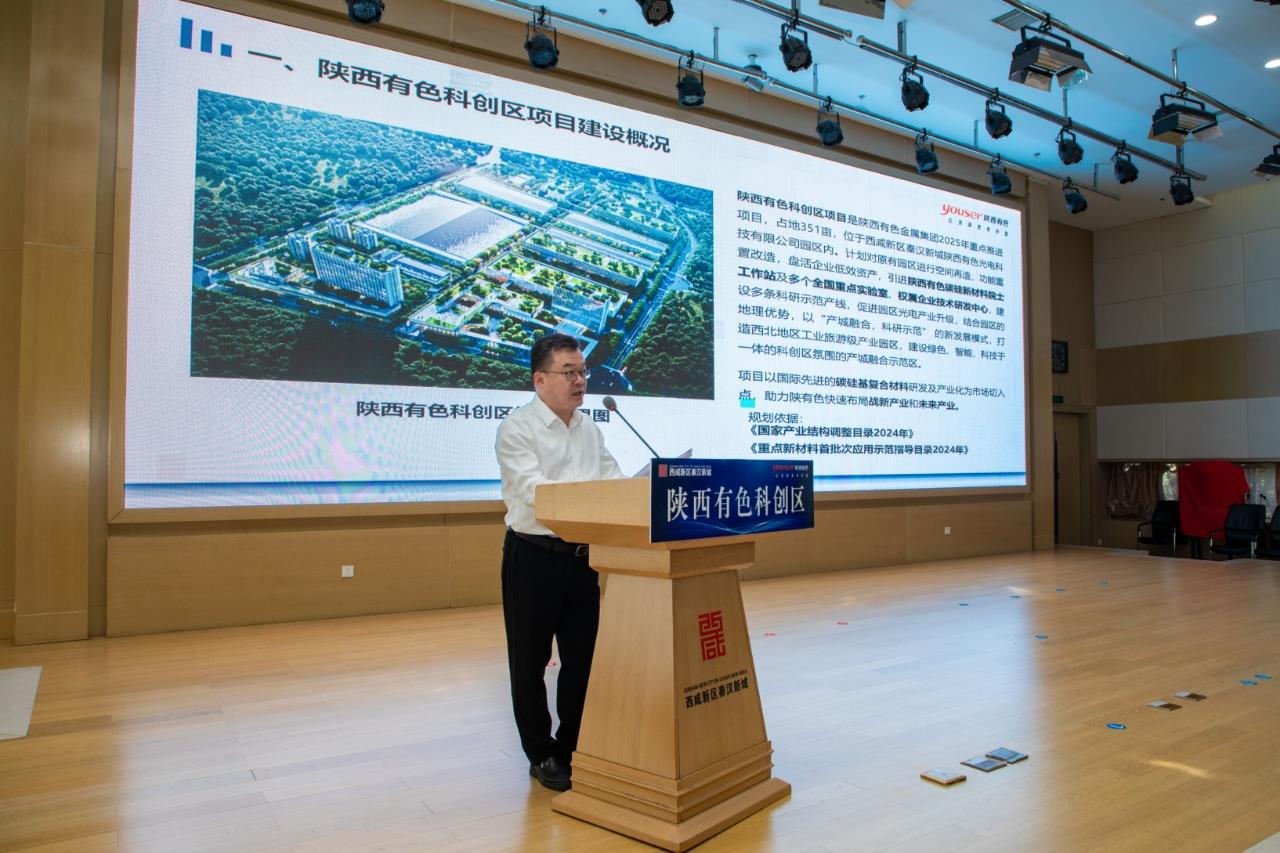 集团公司副总经理苏旭盛就科创区项目的整体规划、入驻项目情况及后续推进计划作了详细介绍,指出陕西有色科创区项目瞄准战新产业和未来产业,以国际先进的碳硅基复合材料研发及产业化为市场切入点,通过空间重构、功能升级与技术创新,建设研发实验室、中试车间及院士工作站,构建“产学研用”一体化平台,建设绿色、智能、科技于一体的产城融合示范区。陕西有色科创区项目是集团公司响应国家创新驱动发展战略、布局战略性新兴产业、未来产业的重要举措,项目的落地将成为集团公司高质量发展的新引擎,对于推动秦汉新城新材料产业延链补链强链、打造先进制造业高地具有重要意义。