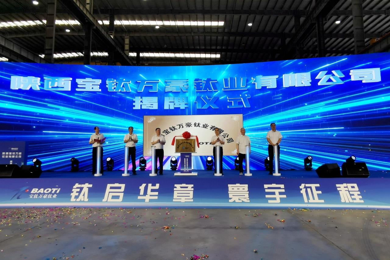 8月26日,陕西宝钛万豪钛业有限公司揭牌仪式在宝鸡举行。陕西有色金属集团党委副书记、董事、总经理莫勇,宝鸡市人民政府党组成员、副市长张昭出席并揭牌。