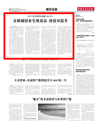 追赶超越谱新篇之二十:金钼股份2017年利润同比增幅 66.57%