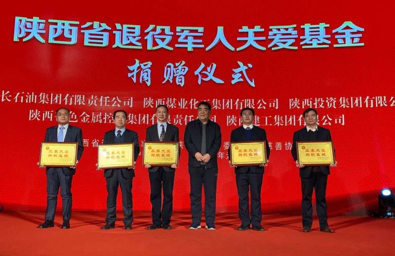 仪式现场发布了陕西省退役军人关爱基金主题LOGO,20户省属企业共捐款3000万元。出席仪式的省上领导为捐赠企业代表颁发了捐赠证书、捐赠铜牌。