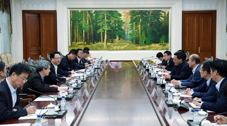 5月15日,吉林省委副书记、省长景俊海与陕西有色金属控股集团董事长马宝平一行在长春就建设有色金属产业园等项目进行工作洽谈。