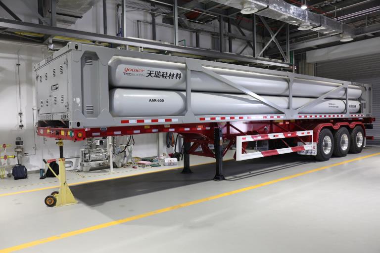 728928分,随着满载硅烷气的硅烷槽车从陕西有色天宏瑞科硅材料有限责任公司大门口缓缓驶出,标志着该公司硅烷气正式进入市场,也是公司历经两年试生产取得的又一丰硕成果,更是为公司高纯电子级硅烷气产品逐步进入高端领域市场奠定了坚实的基础。