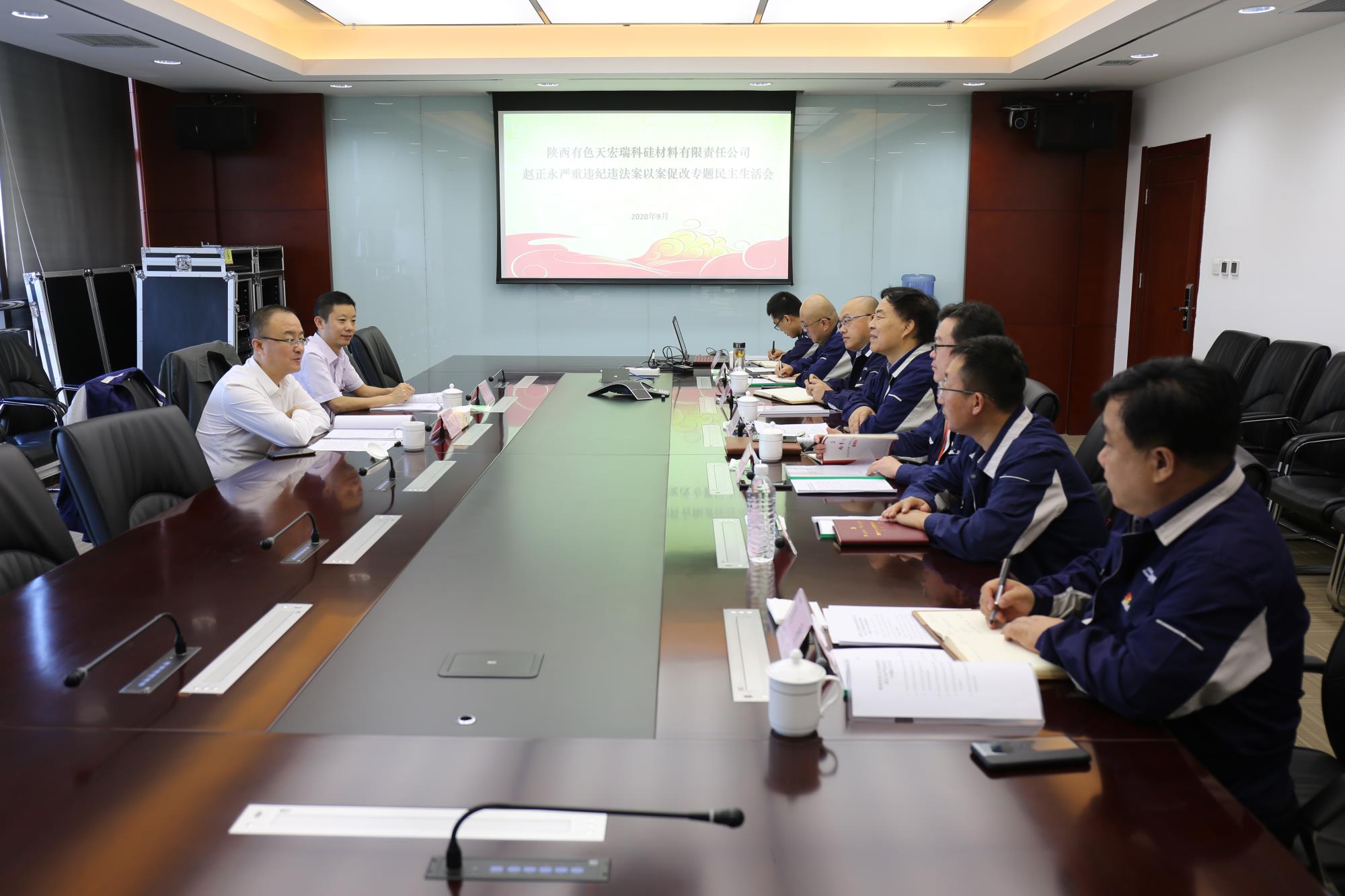 9月6日,天瑞硅材料党委召开赵正永严重违纪违法案以案促改专题民主生活会。集团公司党委委员、纪委书记、省监委驻集团公司监察专员魏国林到会指导。公司党委书记、董事长胡俊辉主持会议,公司全体党委委员参加会议,党群工作部负责人列席会议。