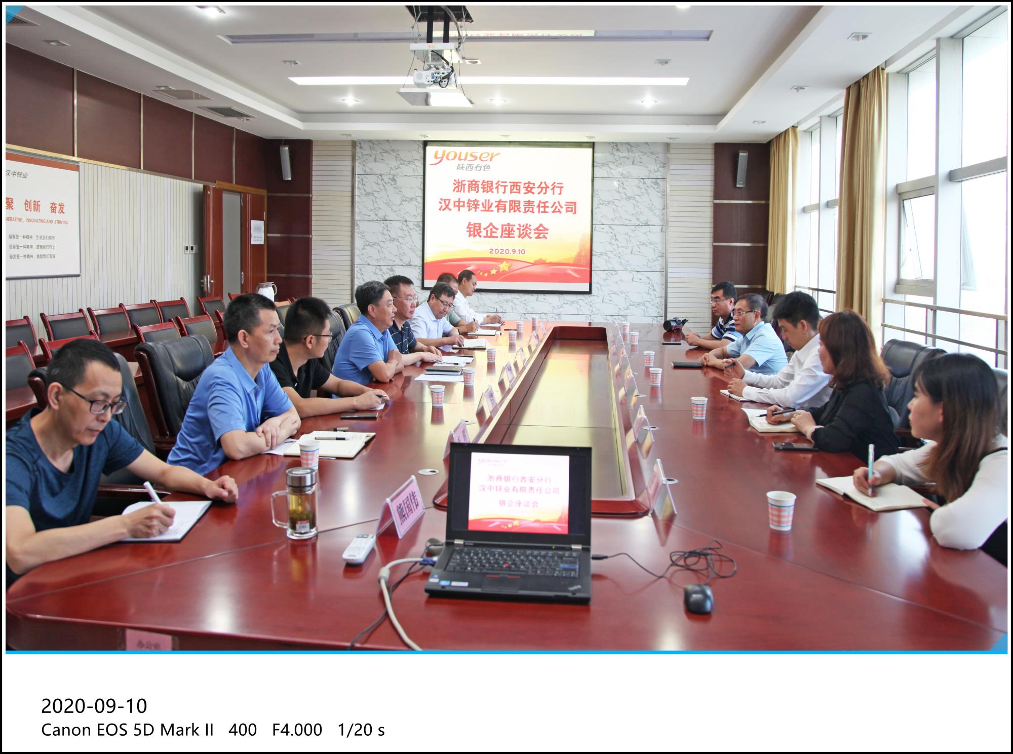 9月10日,在陕西有色金属集团总经理助理、财务部主任申占鑫等的陪同下,浙商银行西安分行行长陈朝平一行到公司调研并与公司党委书记、董事长何学斌,党委副书记、总经理王正民等公司领导进行座谈。