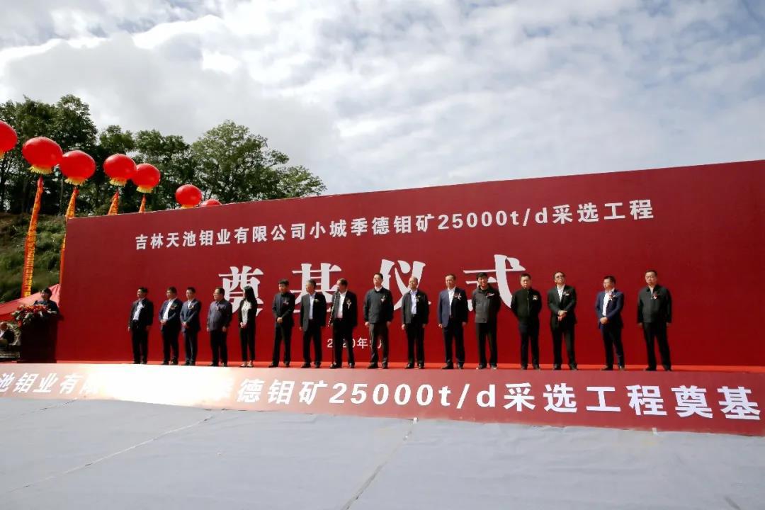 9月13日,吉林天池钼业有限公司小城季德钼矿25000t/d钼矿石项目采选工程奠基仪式在吉林省舒兰市小城季德钼矿举行。吉林省国资委副主任李弼枢,吉林省地质矿产勘察开发局副局长李军,陕西有色金属集团董事、金钼集团党委书记、董事长程方方,吉林省国有资本运营公司党委书记、董事长张志新,吉林天池钼业有限公司董事长邱士杰出席奠基仪式。吉林市副市长、舒兰市市委书记张静辉致辞,市长金华主持奠基仪式。