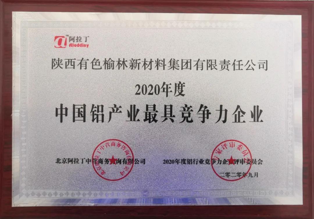 榆林新材料荣获2020年度中国铝产业最具竞争力企业奖