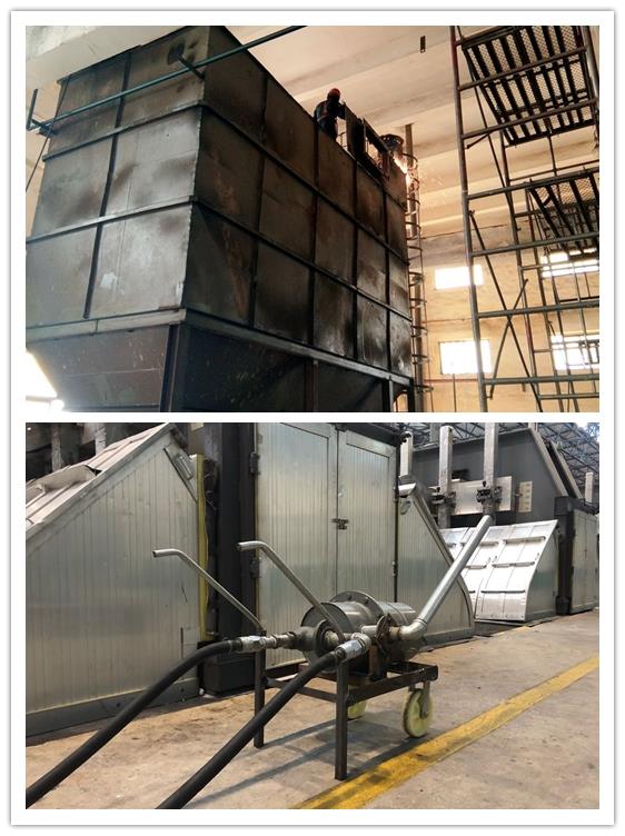 自2019年5月,阳极分公司成型车间利用停产期,有针对性的对悬链厂房暖气系统进行改造。改造期间,车间自行绘制施工图纸,自制暖气片,组织留守职工实施暖气改造及保温工作。改造后,原有∅48主管道被更换为∅89主管道,主管道也用保温棉进行保温,拆除原有的18组低效暖气片后,采用∅133无缝钢管结合现场空间定做暖气片,暖气片外表面涂防锈漆和银粉漆,达到既美观又实用的效果。改造后,原有暖气冬季温度低、成型机冷却水及碳块吹水装置经常被冻住,板链旋转设施经常打滑,严重制约生产的问题彻底得到了根治。