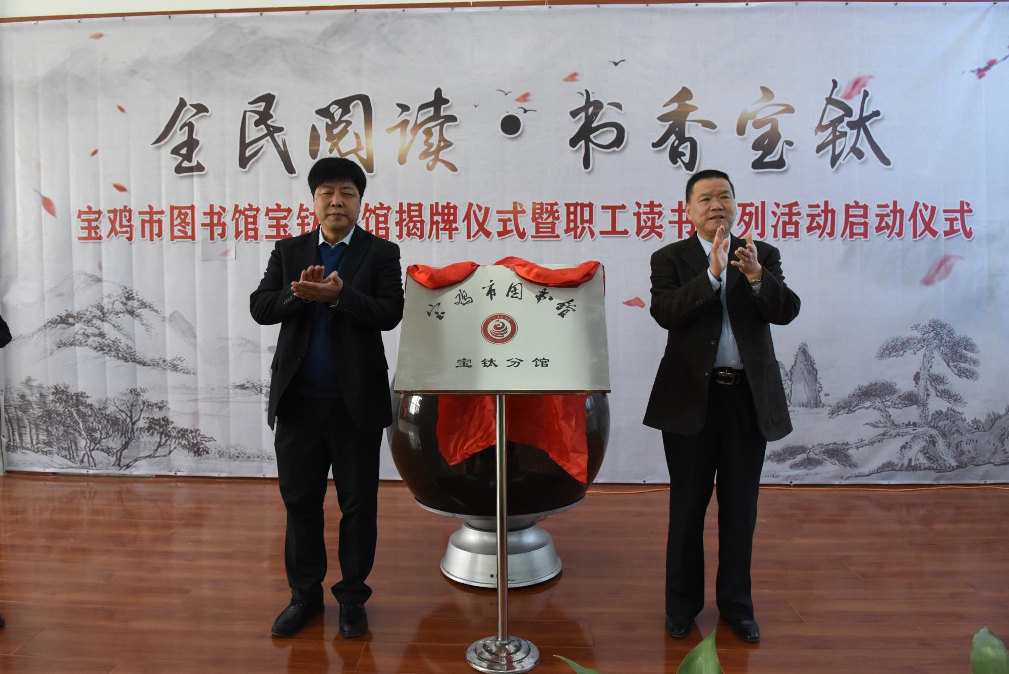 11月10日,宝鸡市图书馆宝钛分馆揭牌仪式暨“全民阅读•书香宝钛”职工读书系列活动启动仪式在宝钛文体中心综合馆二楼图书馆举行。公司党委副书记、工会主席王建超,纪委书记贺治民,副总经理薛凯,及公司党群各部室负责人、各二级单位工会主席及代表70余人参加仪式。宝鸡市文化和旅游局公共服务科科长侯文波,宝鸡市图书馆馆长刘掌全、副馆长陈碧红应邀出席仪式。